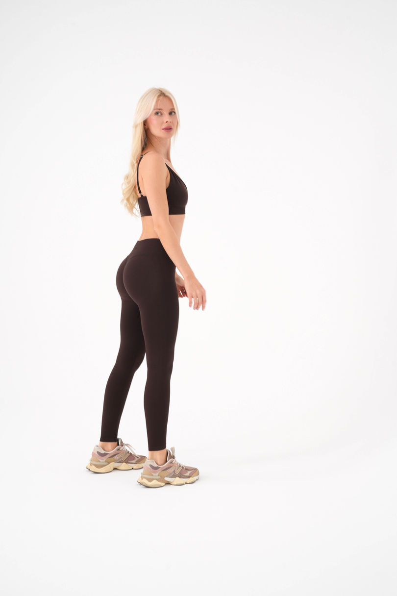 Esnek ve nefes alabilen kumaşı hareket özgürlüğü sağlarken, dikişsiz (seamless) tasarımı ciltte iz yapmaz. Kahverenginin doğal ve modern tonu, spor kombinlerinden günlük stile kadar kolayca uyum sağlar.